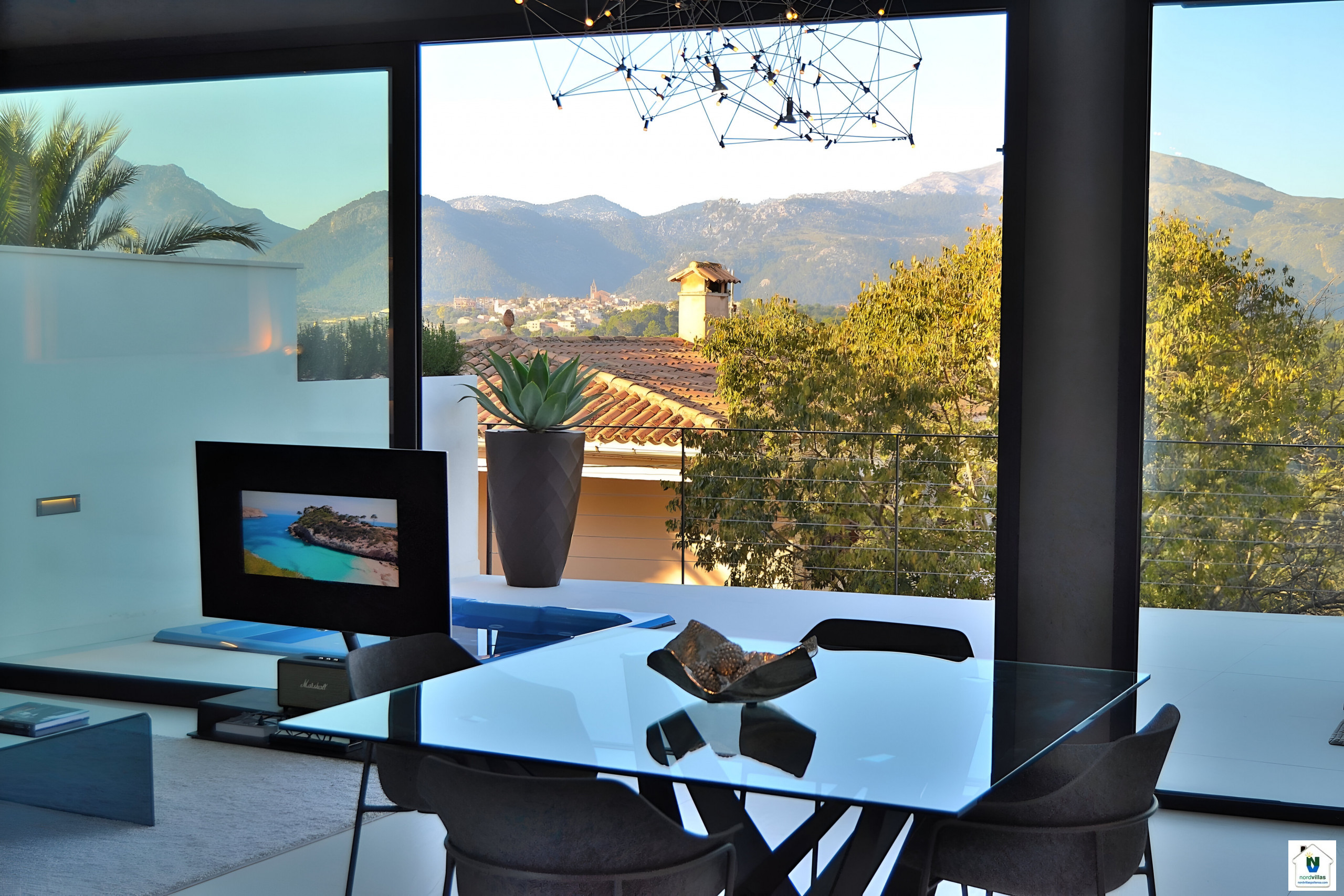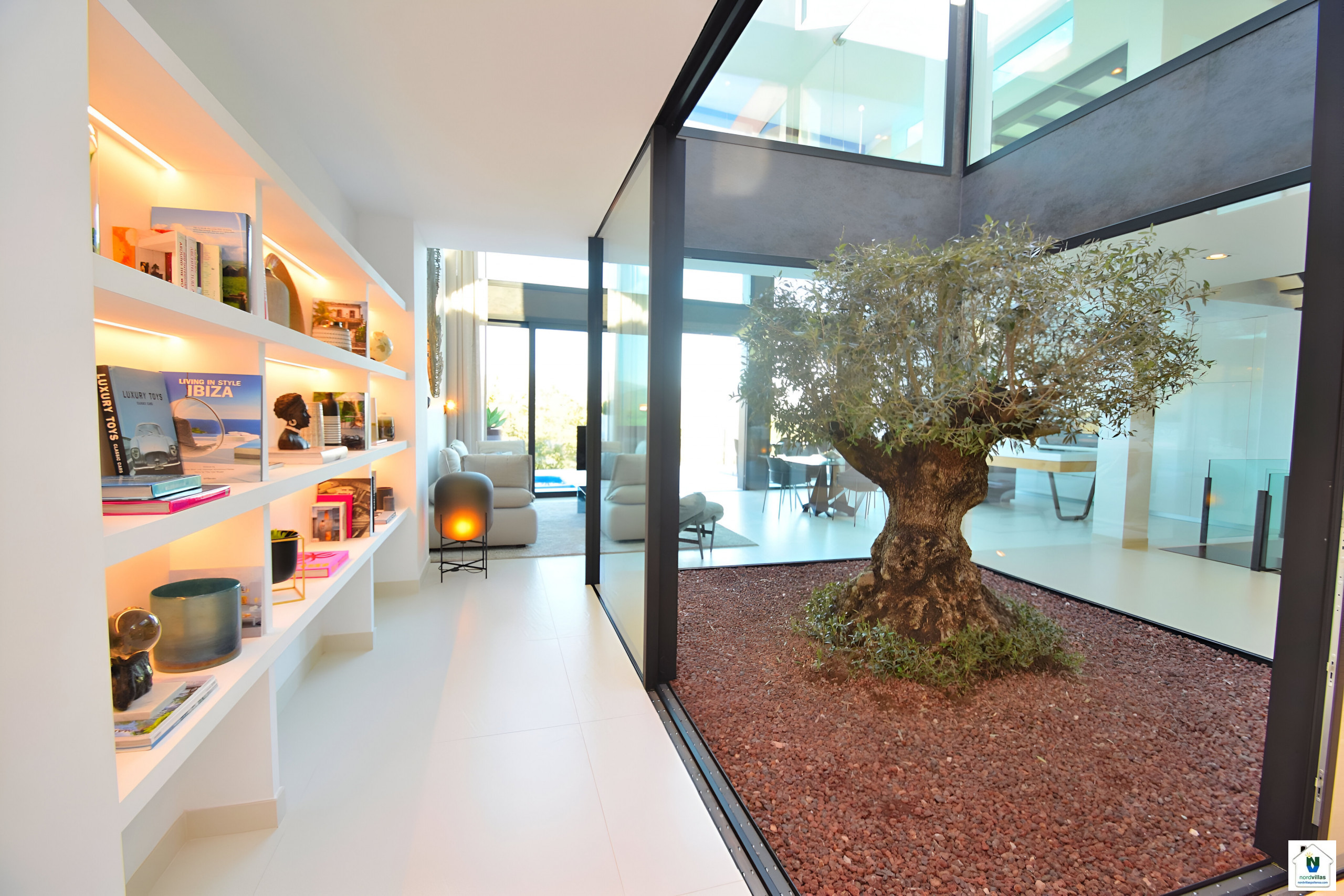 Umgeben von vier Glaswänden ist der Baum das Herzstück der Immobilie und repräsentiert die ländliche Geschichte und die Natur Mallorcas.