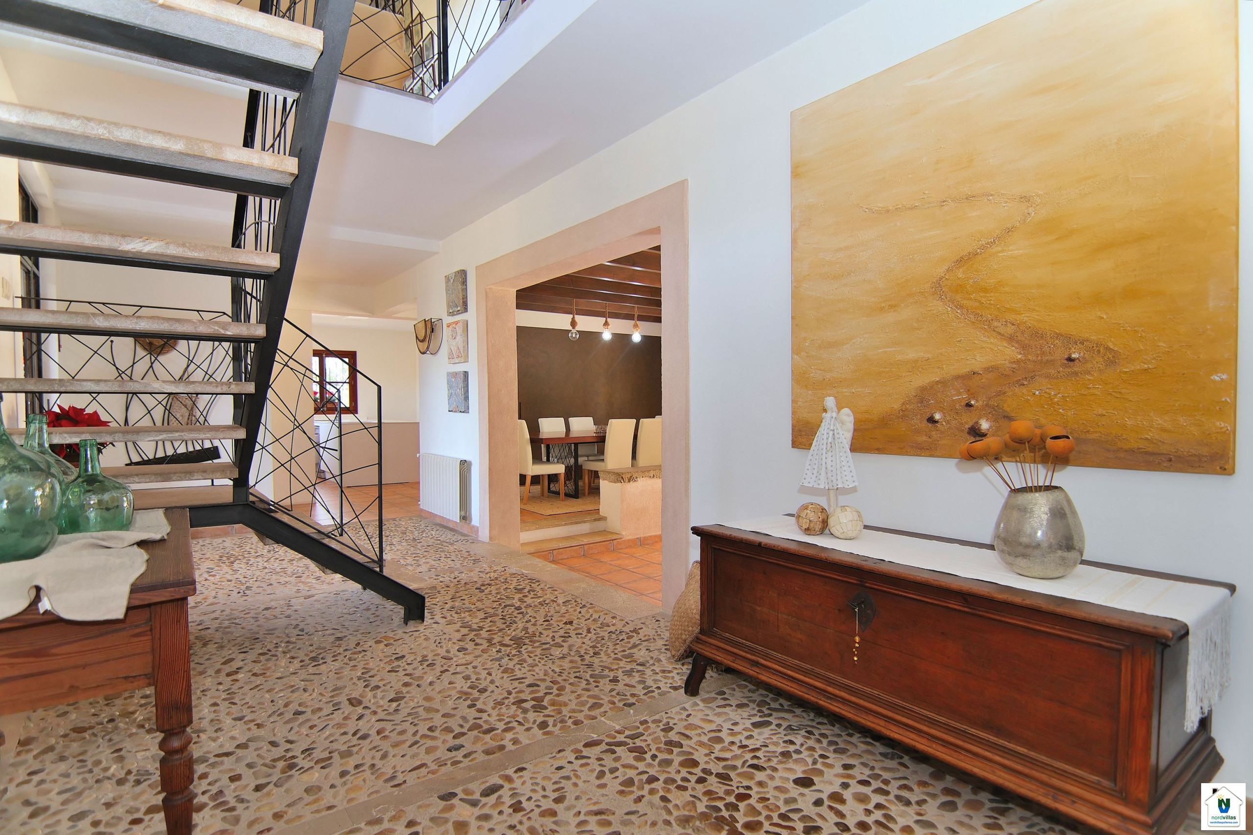 Tauche ein in den Zauber dieser luxuriösen mallorquinischen Villa, die zwischen den idyllischen Weinbergen von Binissalem liegt. Mit über 450 m², verteilt auf zwei Etagen, vereint dieser Ort der Raffinesse großzügige und lichtdurchflutete Räume mit akribisch gestalteten Details.