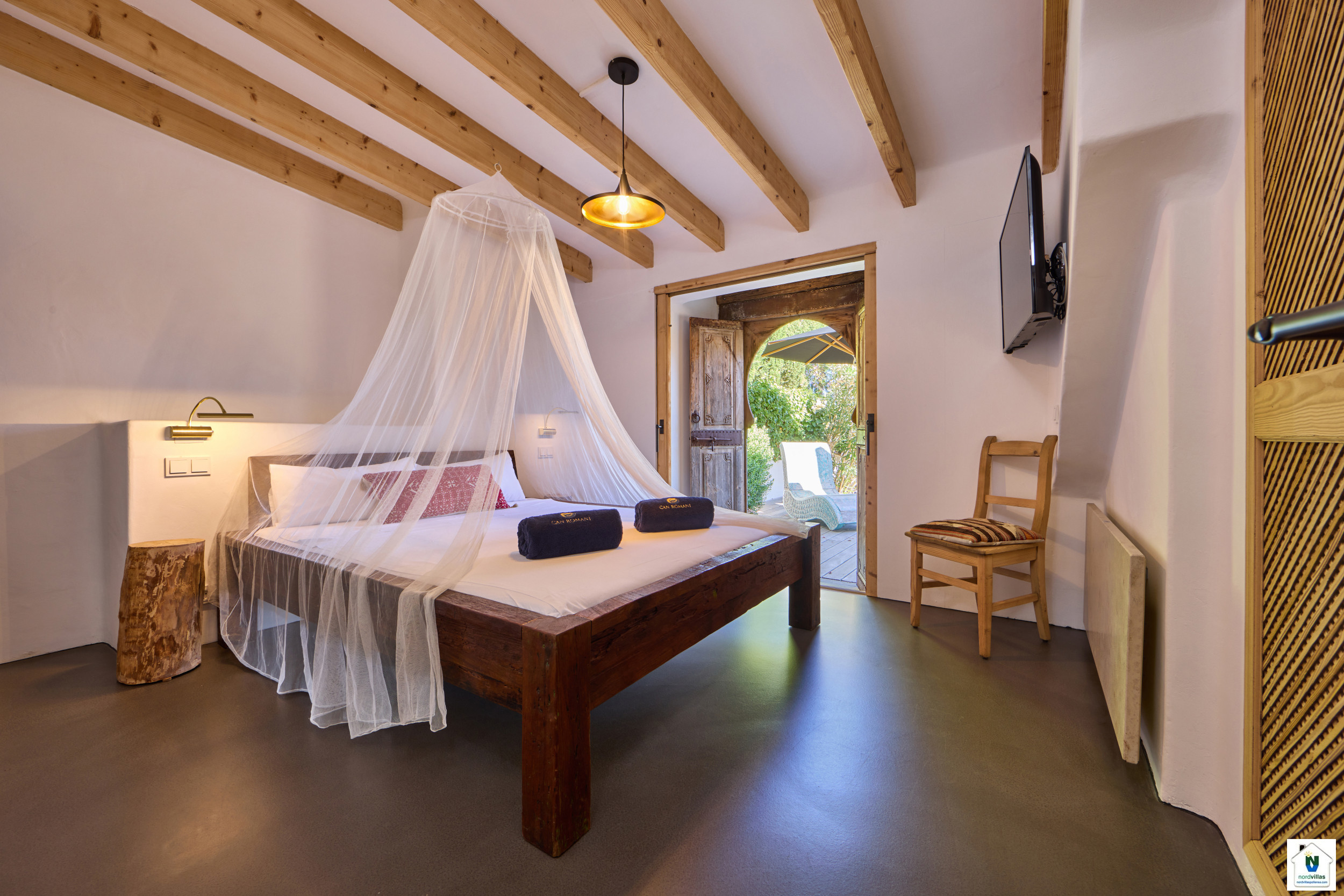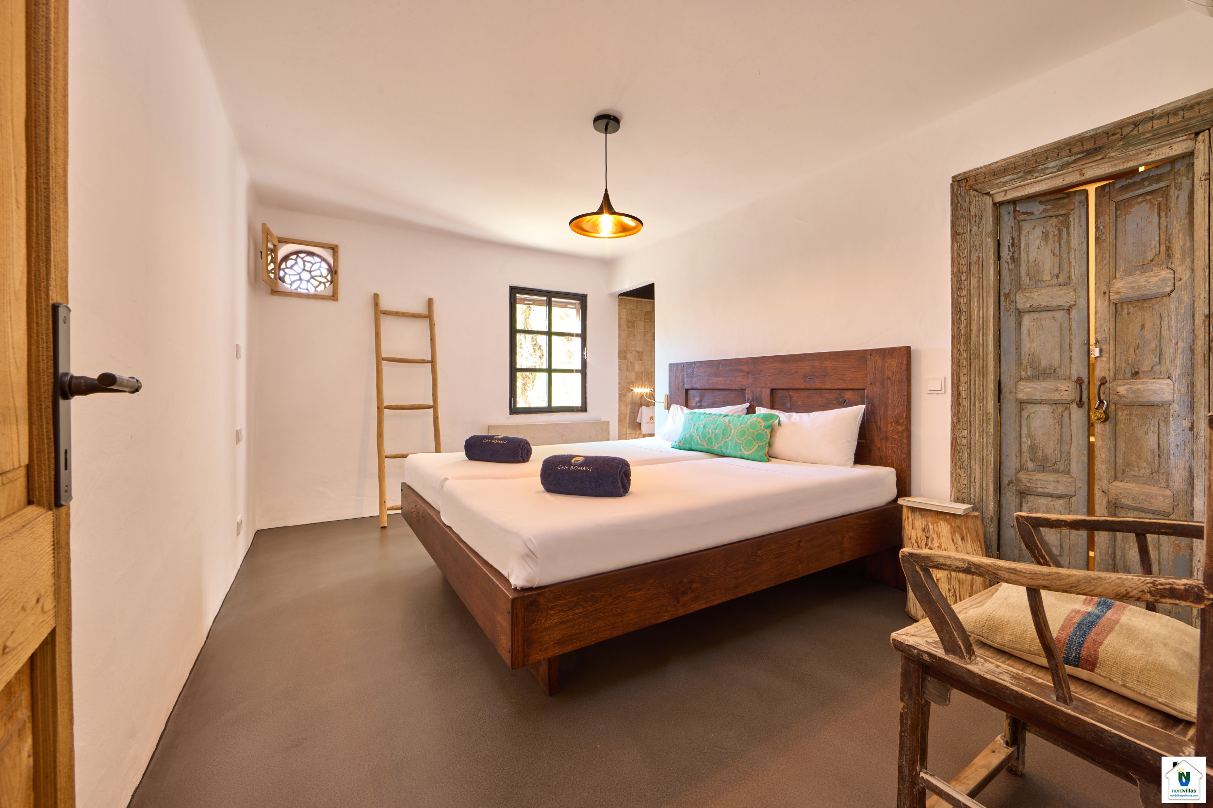 Das Haus kann bequem bis zu 6 Gäste in seinen 3 Doppelzimmern mit Klimaanlage beherbergen, alle mit eigenem Badezimmer (Dusche oder Badewanne) und direktem Zugang zu sonnigen Terrassen. Das Obergeschoss bewahrt eine besondere Ecke: eine überwölbte Terrasse, ideal für private Frühstücke oder romantische Abende zu zweit.