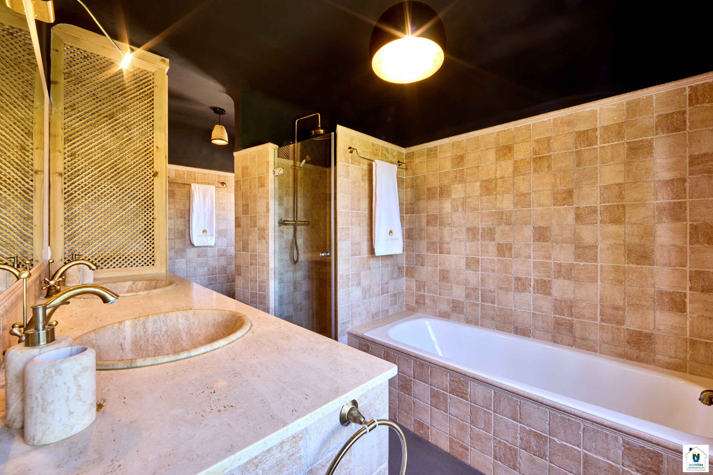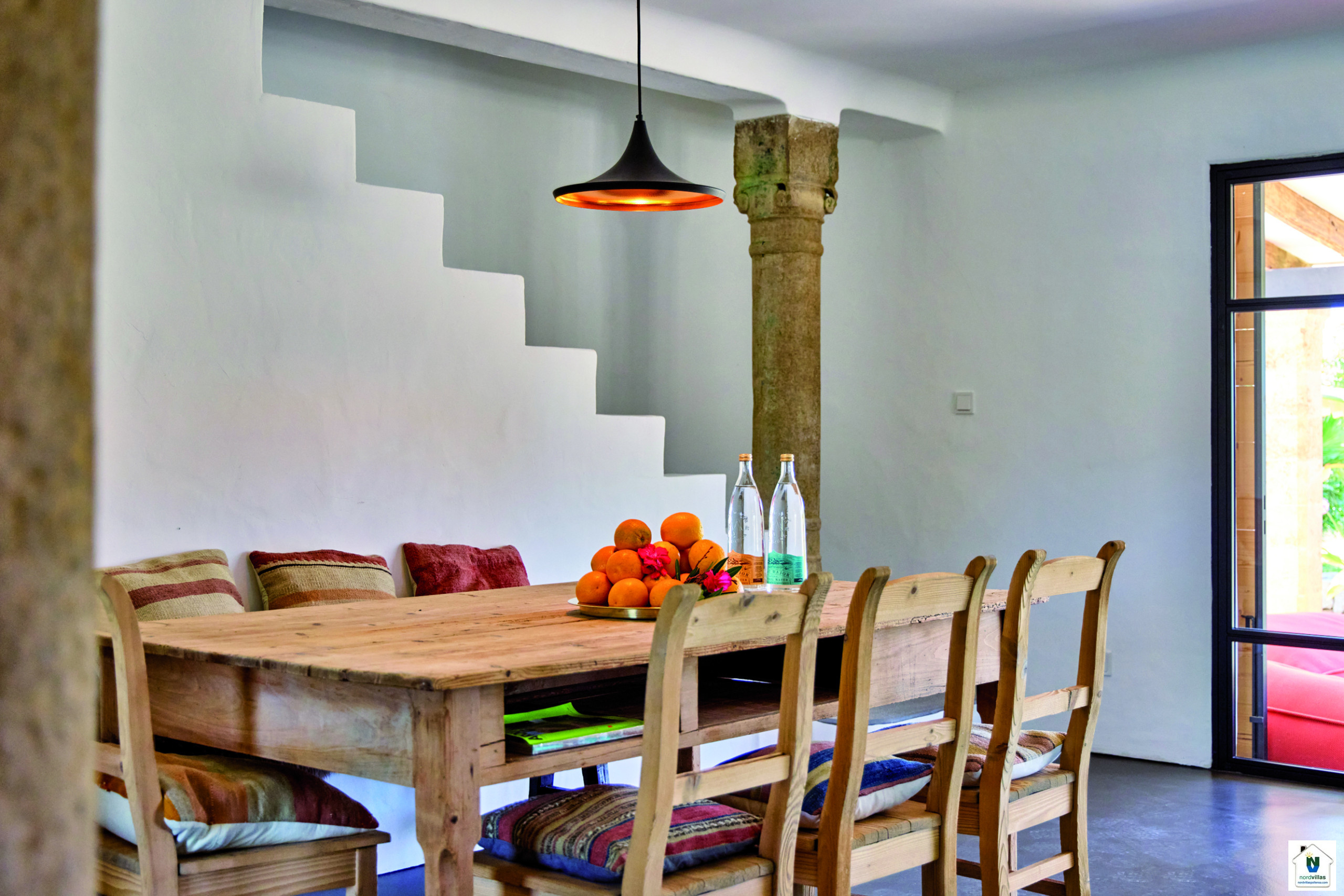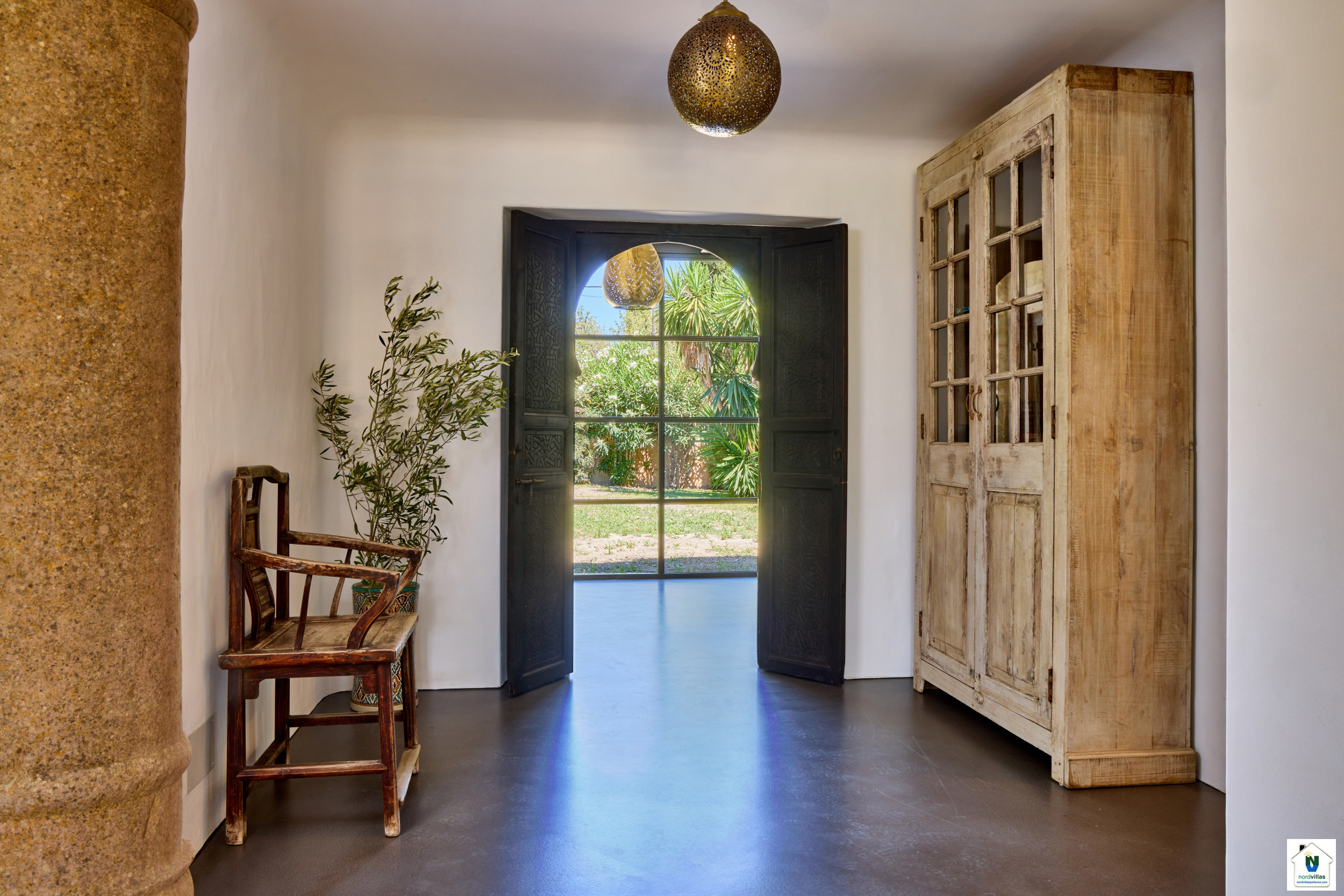 Mit 180 m² Wohnfläche und umgeben von einem privaten Grundstück von 9.000 m², das vollständig eingezäunt ist, bietet diese Immobilie einen intimen und sicheren Zufluchtsort, der perfekt für diejenigen ist, die Privatsphäre und Ruhe suchen. Ihr Design verbindet Modernität, Farbe und orientalische Elemente, die sowohl im Inneren als auch im Äußeren eine exotische Atmosphäre hervorrufen.