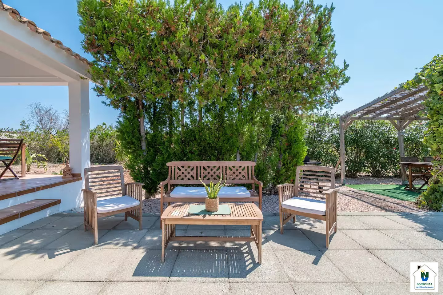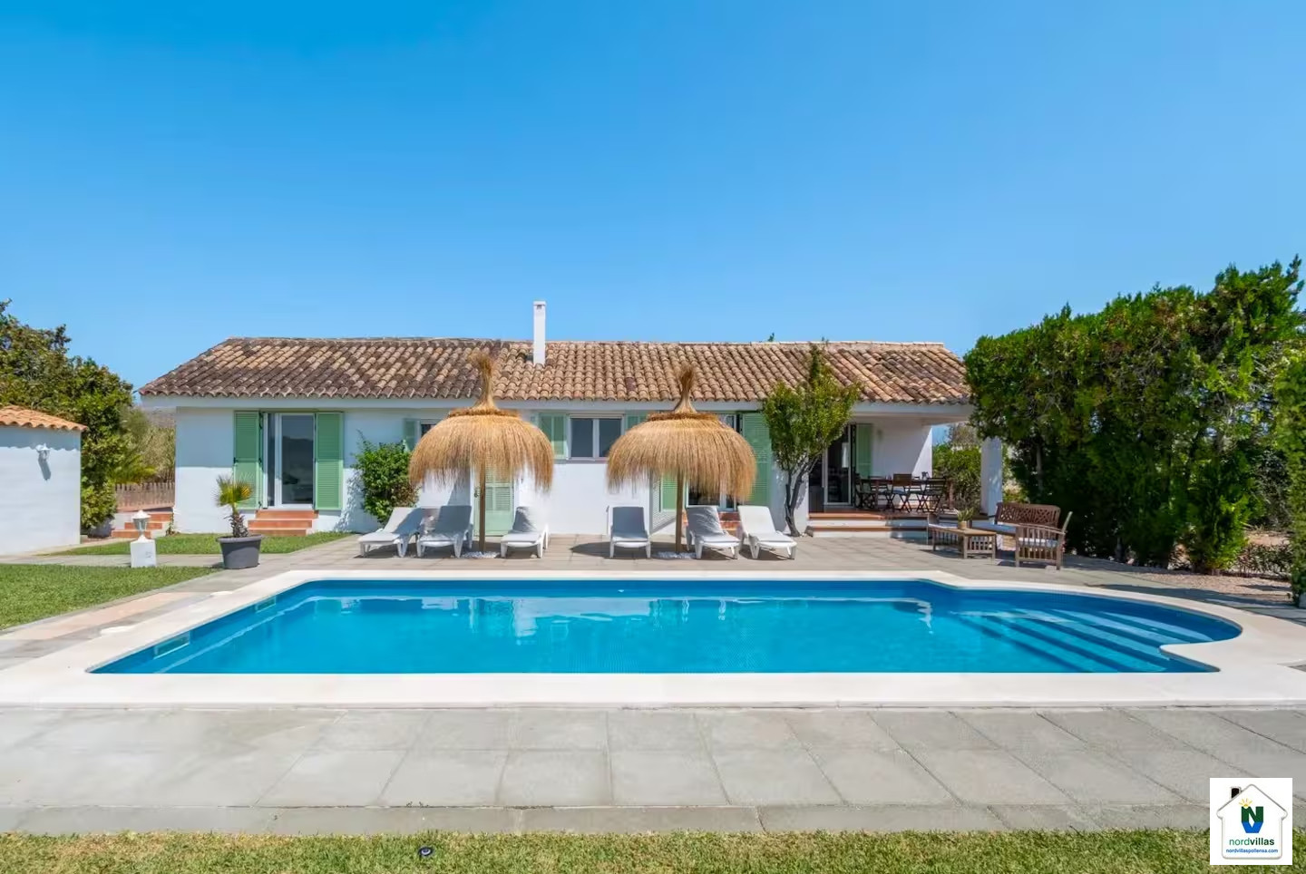 Die Unterkunft verfügt über einen Garten, Gartenmöbel, ein umzäuntes Grundstück, eine Terrasse, eine Waschmaschine, einen Grillplatz, ein Bügeleisen/-brett, ein Internetanschluss (WLAN), ein Föhn, eine Alarmanlage, eine Klimaanlage, ein Privatpool, einen Parkplatz im Freien (2 Stellplätze) auf dem Grundstück, 1 Fernseher.