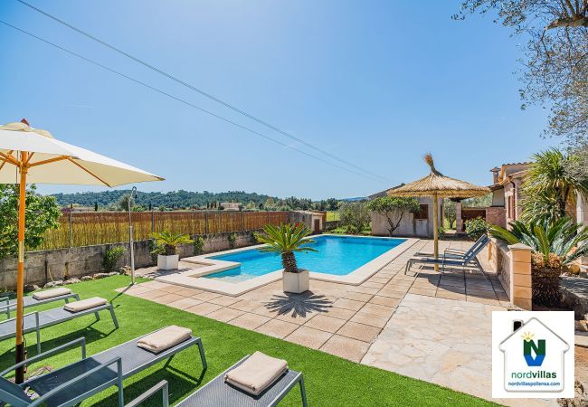 Auf halbem Weg zwischen Puerto Pollenca und Pollensa liegt diese schöne Finca mit privatem Pool und herrlichem Garten. Mediterranes Ambiente verbreiten die Blumenarrangements und Palmen rund um den Pool. Auf der gepflegten Rasenfläche im Poolbereich können Sonnenliegen und Sonnenschirme aufgestellt werden, so dass einem entspannenden Sonnenbad nichts mehr im Wege steht. Erfrischen können Sie sich anschließend in dem mit Treppeneinsteig versehenen Pool. Die überdachte Terrasse ist mit bequemen Möbeln ausgestattet und bietet somit ideale Bedingungen für gemeinsame Mahlzeiten im Freien. Im Grillbereich steht Ihnen ein gemauerter Grill zur Verfügung auf dem Sie leckere Gerichte zubereiten können. Eine möblierte Sonnenterrasse und eine Außendusche sind zu Ihrem Komfort ebenso vorhanden.