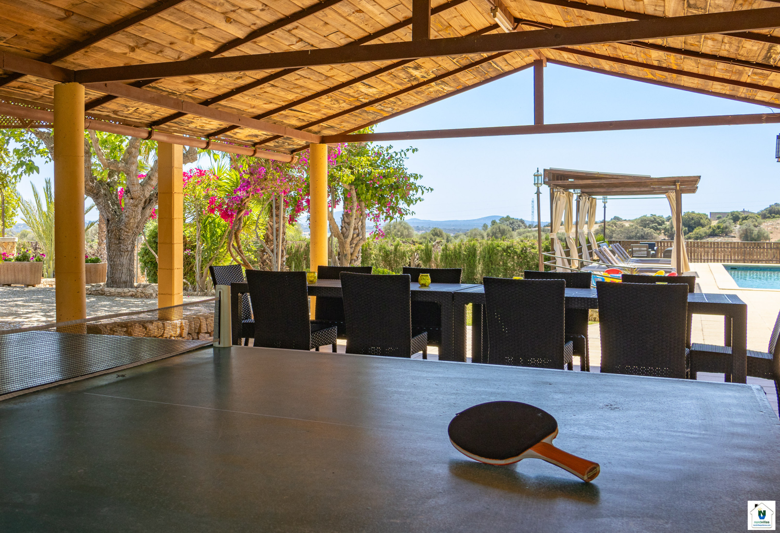 Wunderschöner äusserlicher Anblick, wie man sich eine spanische Finca vorstellt. Tolle überdachte Terrasse mit