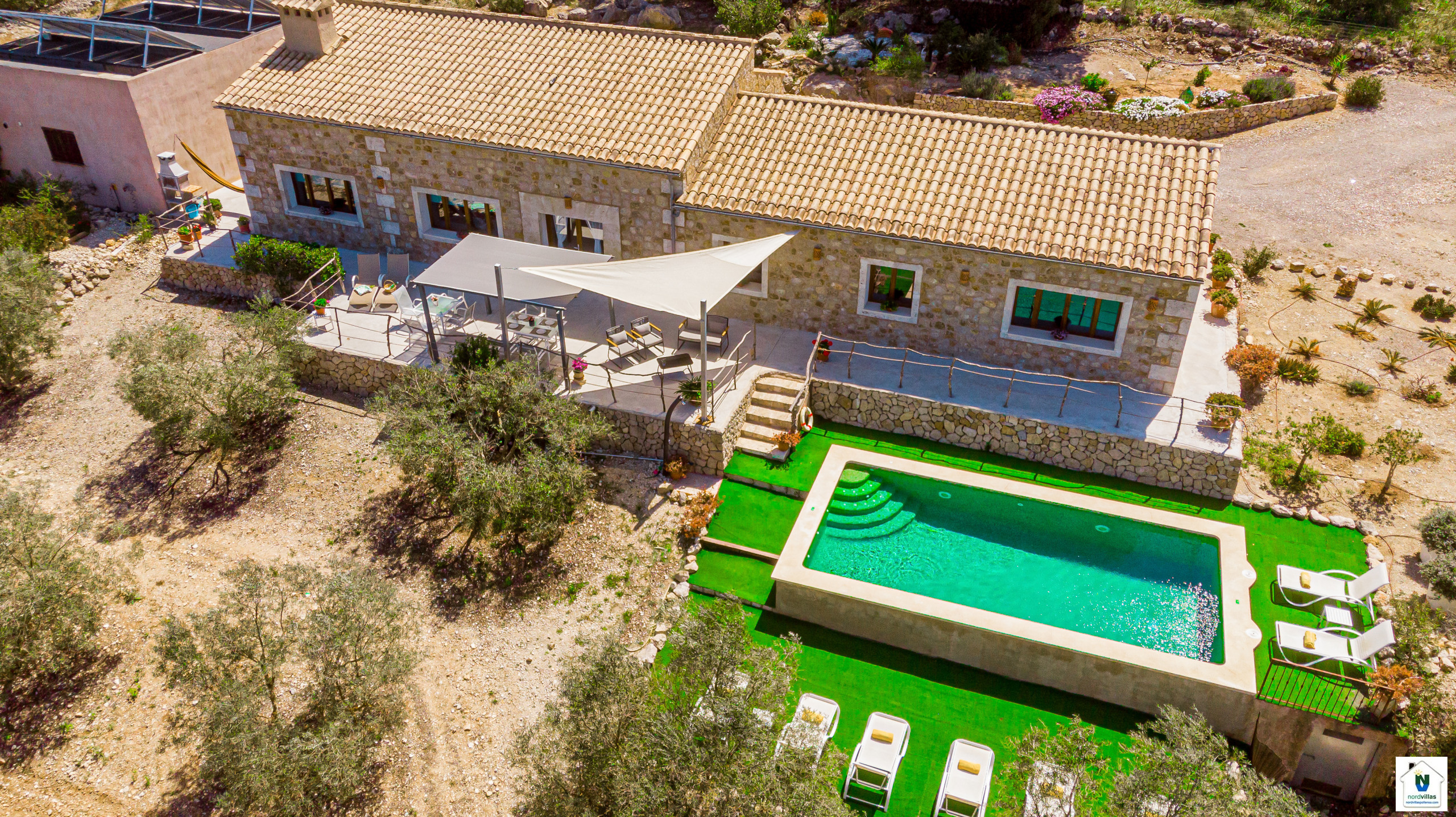 Caluix ist ein spektakuläres Landhaus aus Stein mit einem beeindruckenden Pool, gelegen zwischen den charmanten Landschaften von Sineu im Herzen der Insel Mallorca. Diese charmante eingeschossige Immobilie bietet eine ideale Aufteilung mit einer separaten und sehr geräumigen Küche, einem gemütlichen Wohn-Esszimmer, 4 komfortablen Doppelzimmern und 3 vollständigen Badezimmern, alle mit nachhaltiger Solarenergie versorgt.