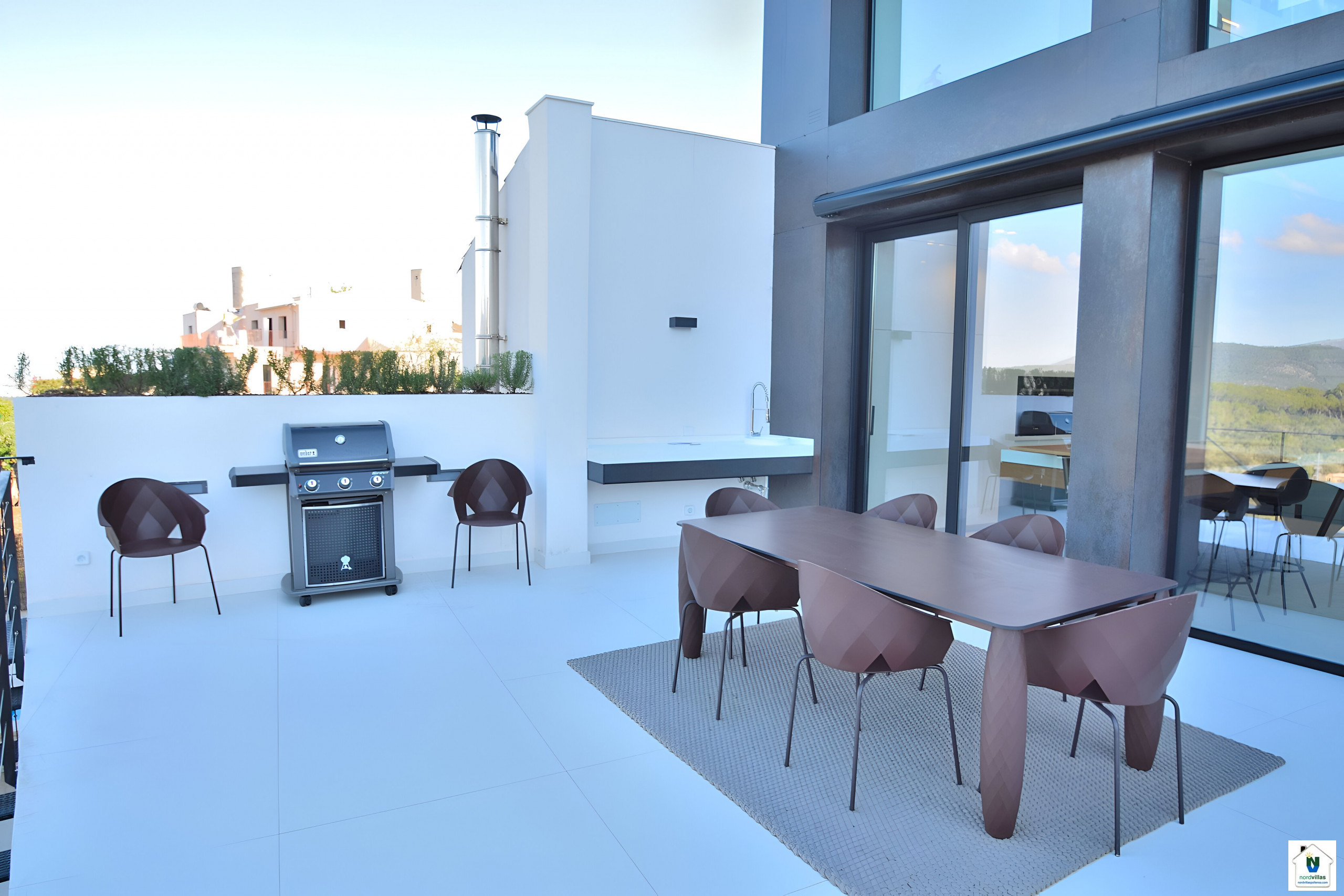 Además, la Villa Montblau cuenta con una gran terraza a la que se accede desde la cocina y que sirve como segundo comedor. Aquí podrá disfrutar de cenas al aire libre y de divertidas noches de barbacoa.
