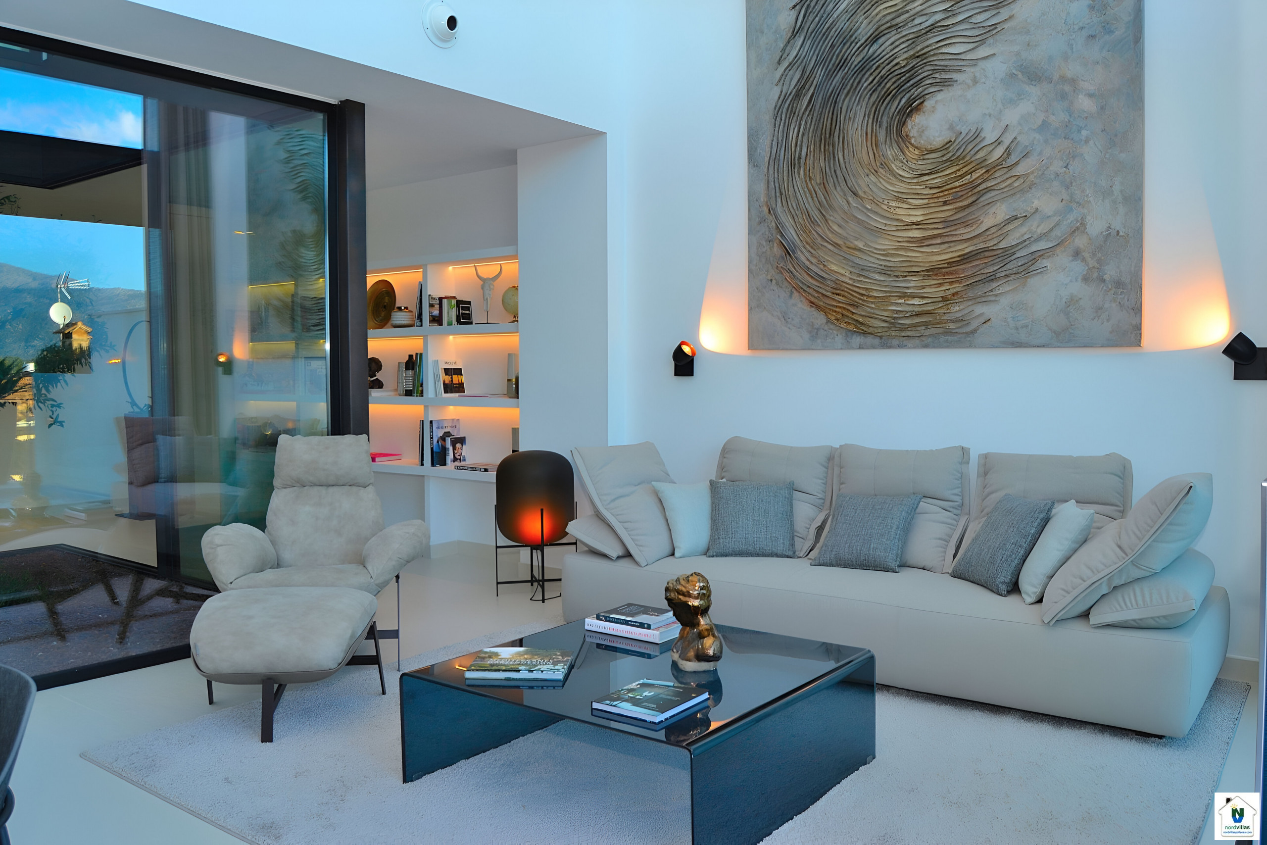 Villa lujosa recién reformada, de estilo moderno y acabados de alta gama, con vistas a la montaña. La casa consta de 400 m2 habitables, con cuatro dormitorios y cinco baños, cuatro de ellos en-suite.