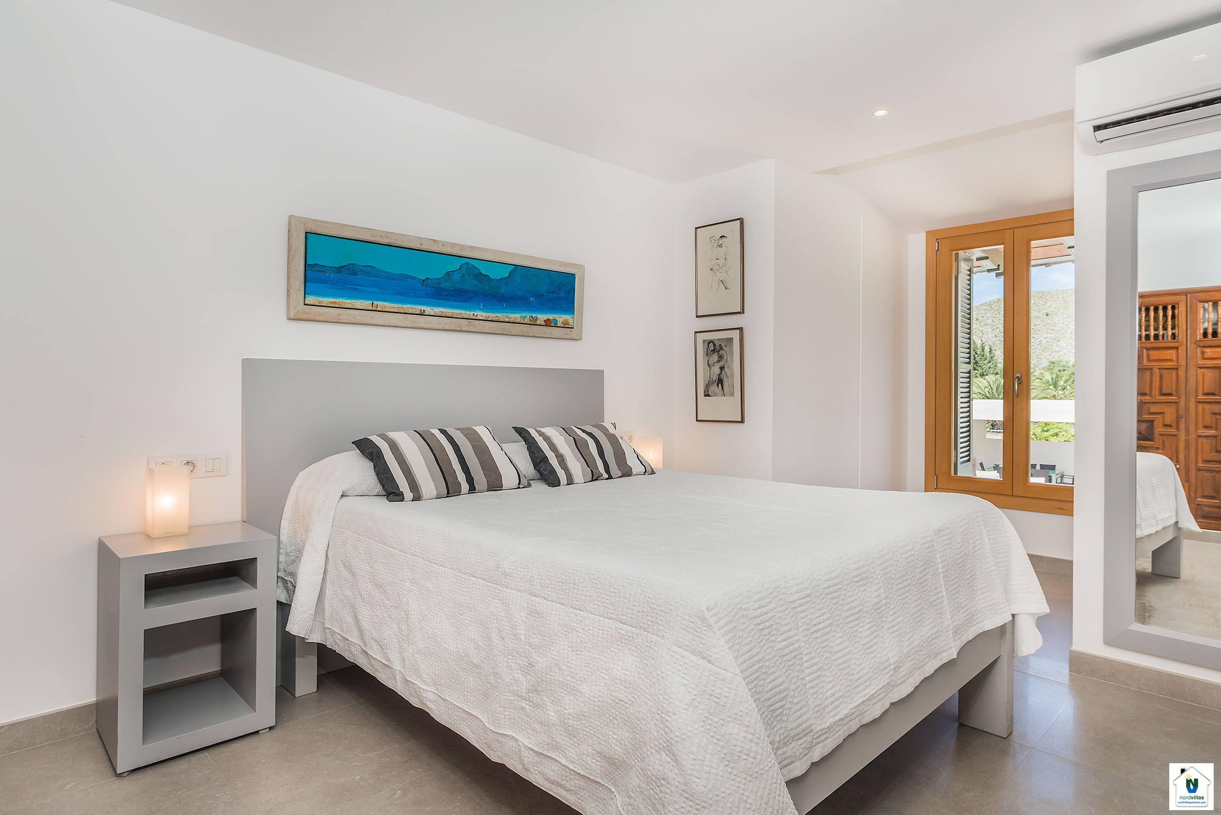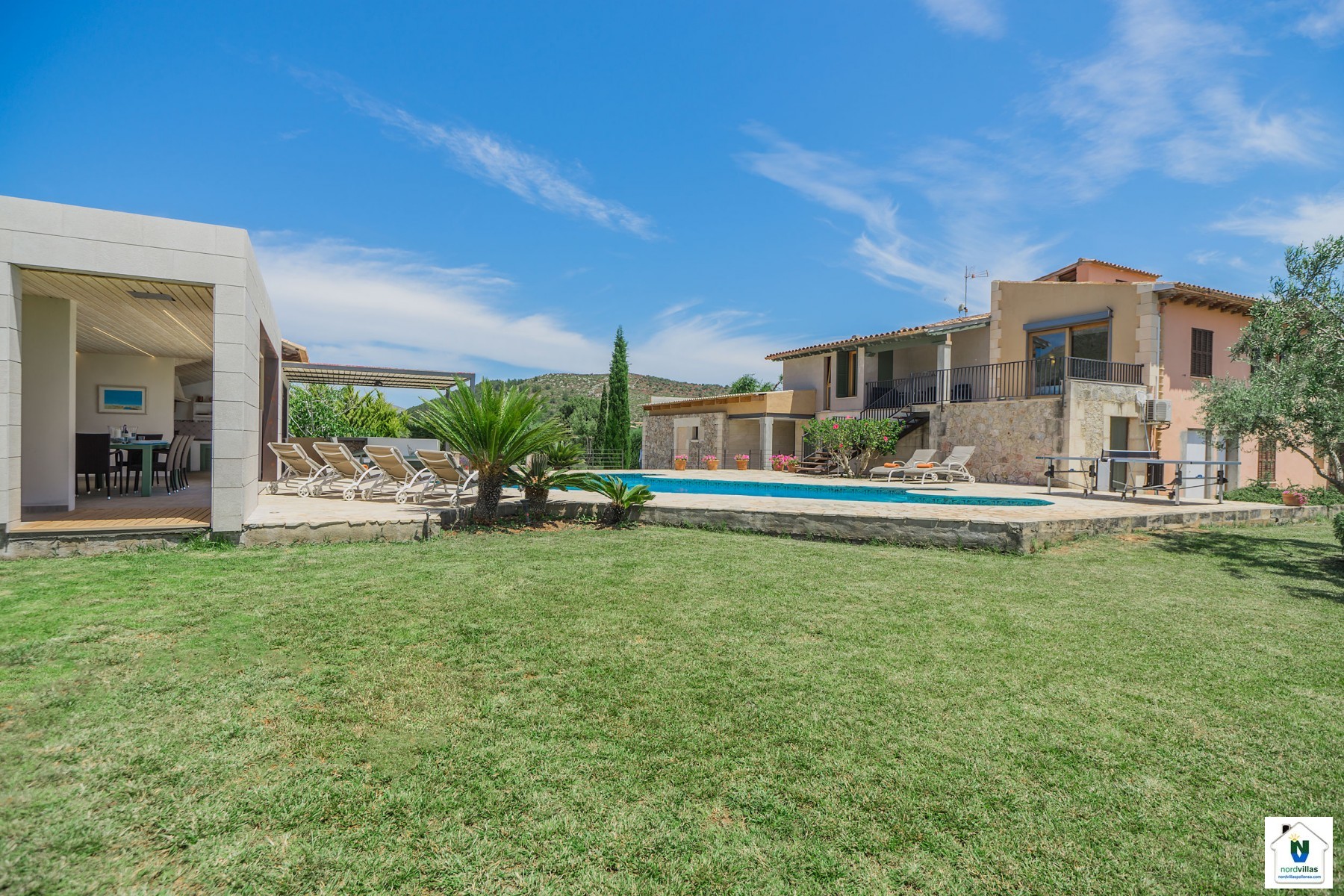 Esta villa es una mezcla perfecta de tradición y modernidad que se encuentra en un lugar tranquilo entre Pollensa y Puerto Pollensa. El jardín bien cuidado es una delicia para el visitante con limoneros, olivos y palmeras y una piscina privada de 12 x 6 metros con escalones con mosaico de azulejos que llevan en el agua. El acceso a la casa es por unas escaleras que desembocan en el salón-comedor, decorado con muebles rústicos. La cocina está totalmente equipada con lavavajillas y mesa de desayuno. Los techos son vigas de madera al estilo mallorquin. Hay 3 dormitorios, todas con aire acondicionado. 2 doble con baño en suite y 1 habitaciones dobles con camas individuales. También hay un baño con ducha. Tiene unas preciosas vistas al campo de Pollensa. Cuenta con un fantástico barbacoa y una cocina exterior con sillas y mesa para cenar al aire libre.