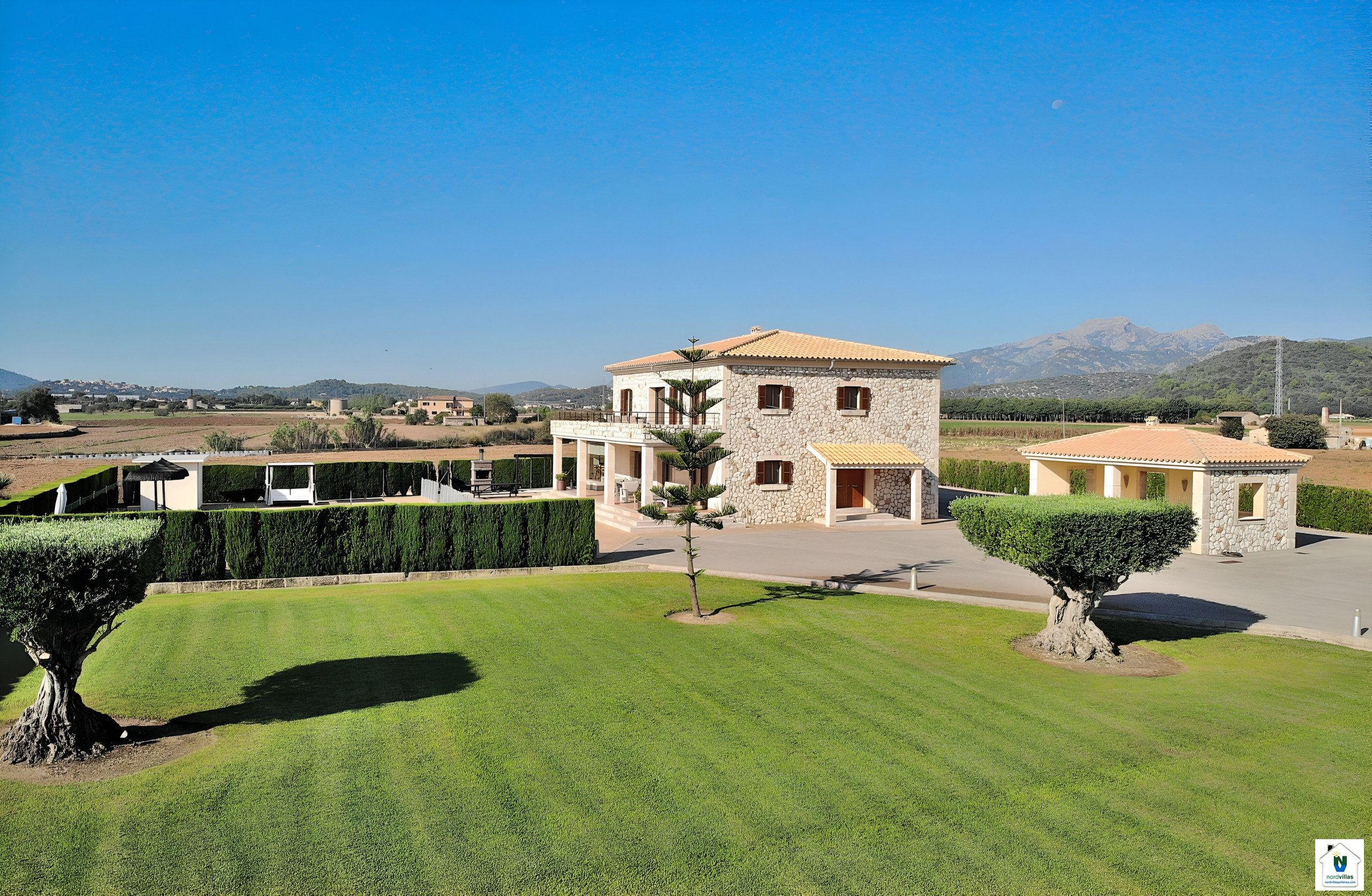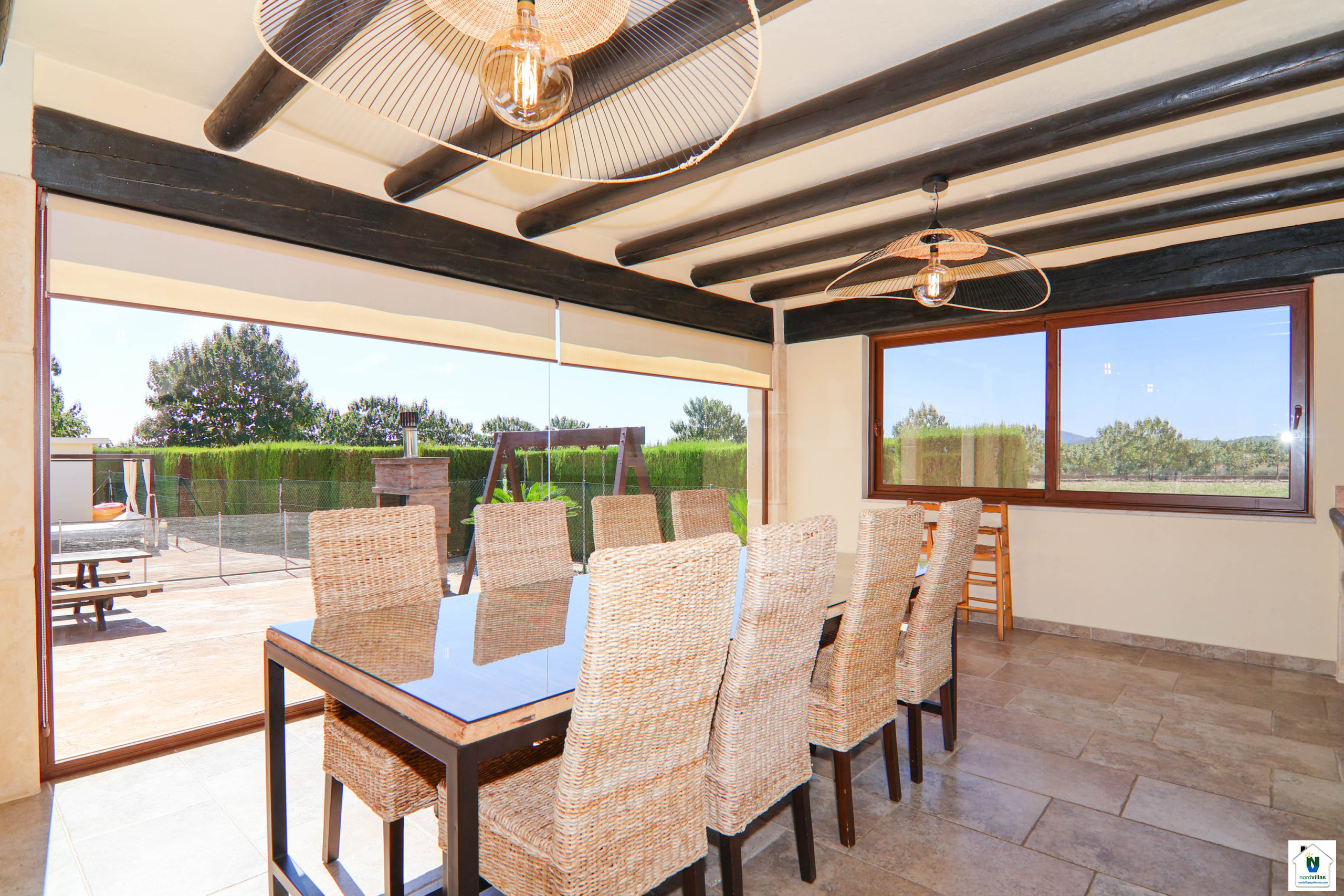Hermosa y moderna Villa cerca de Sa Pobla con una hermosa vista a la montaña. La casa tiene una superficie habitable de aproximadamente 250 m². En la planta baja, junto a la entrada a la derecha, se encuentran las escaleras que llevan al segundo piso. A la izquierda se encuentra el primer dormitorio y delante un baño, el comedor en un concepto abierto con la sala de estar totalmente equipada, también la cocina es súper moderna. Hay otro comedor con barbacoa. En el primer piso hay dos baños más y tres dormitorios. Desde el balcón se puede disfrutar de las fantásticas vistas de la campiña mallorquina. La casa tiene aire acondicionado y calefacción central.