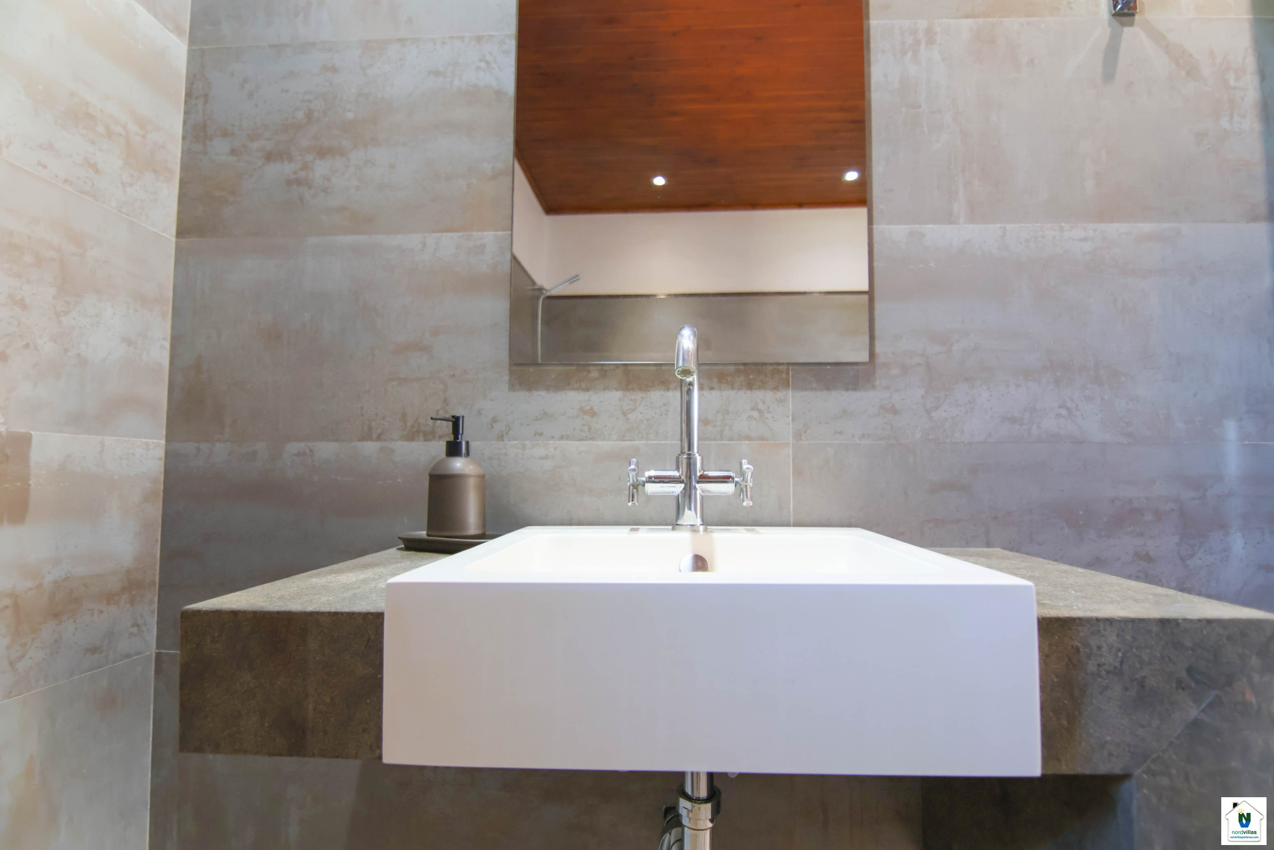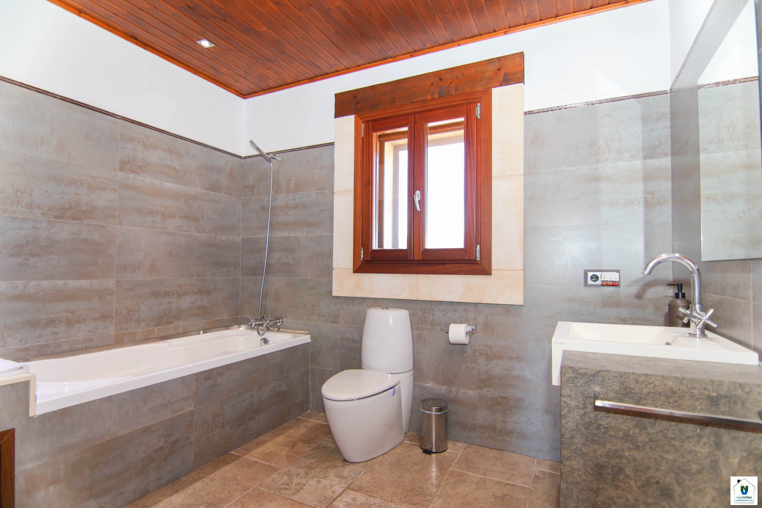 The pool is quite deep all throughout-just a note, not a problem for us though. The only other negative was there being only one shower inside the property which is off the main living area. There is also a very nice modern shower/bathroom next to the pool outside , but it would be better to have showers in the two bathrooms upstairs - there are handheld showers in each bathroom upstairs but no good for an actual shower - ok for rinsing children though. In the en-suite this would easily solved by a glass screen above the bath. |