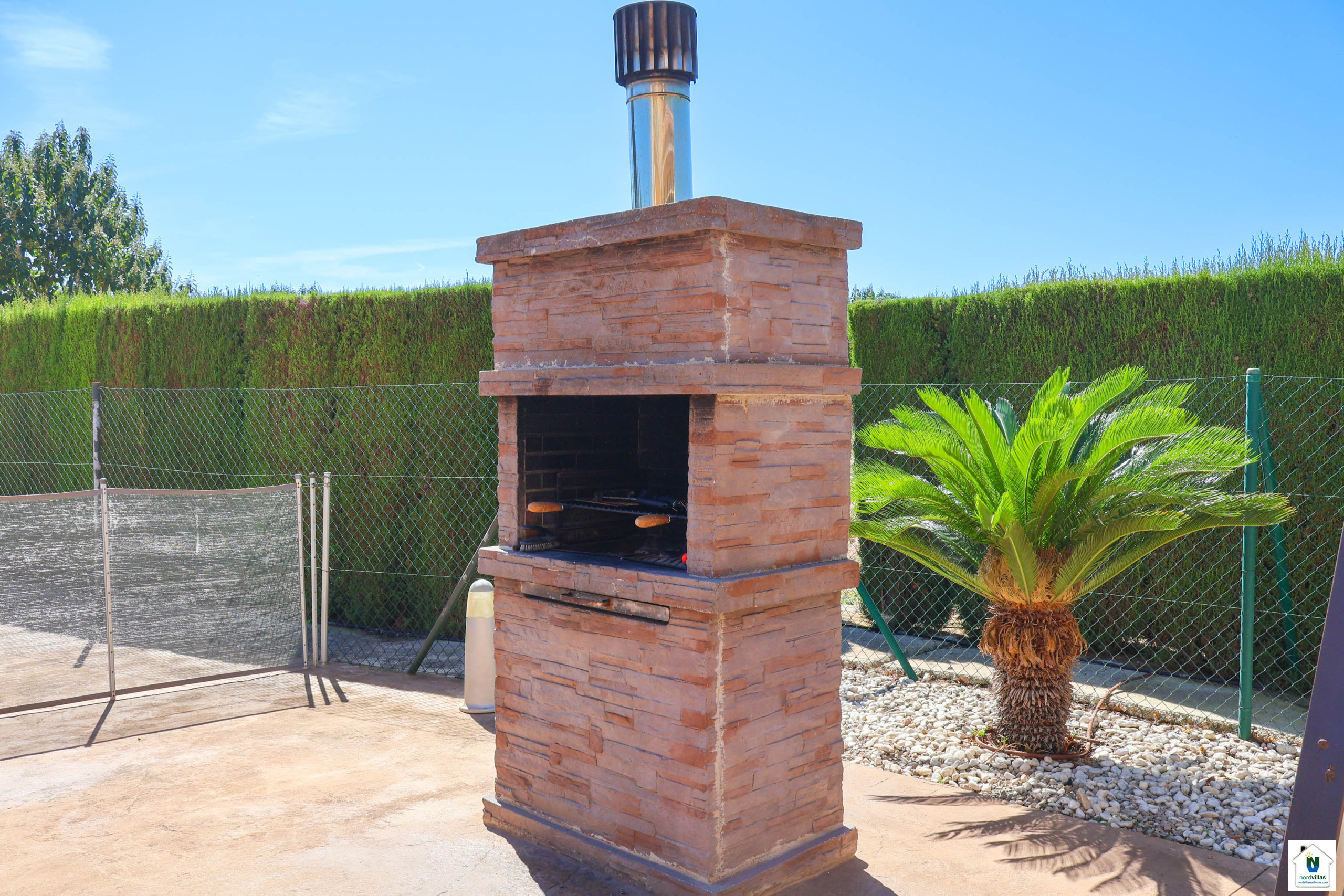Afuera, la casa tiene un gran jardín con una gran piscina, un baño y una barbacoa. El lugar ofrece un espacio encantador donde la familia y amigos pueden vivir momentos inolvidables.