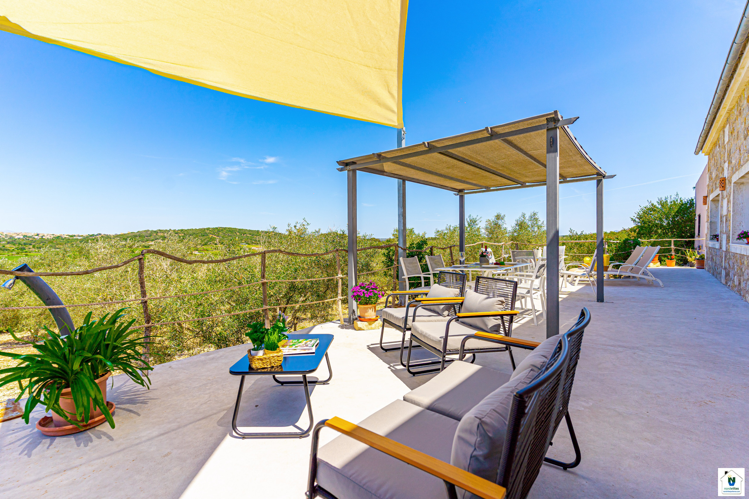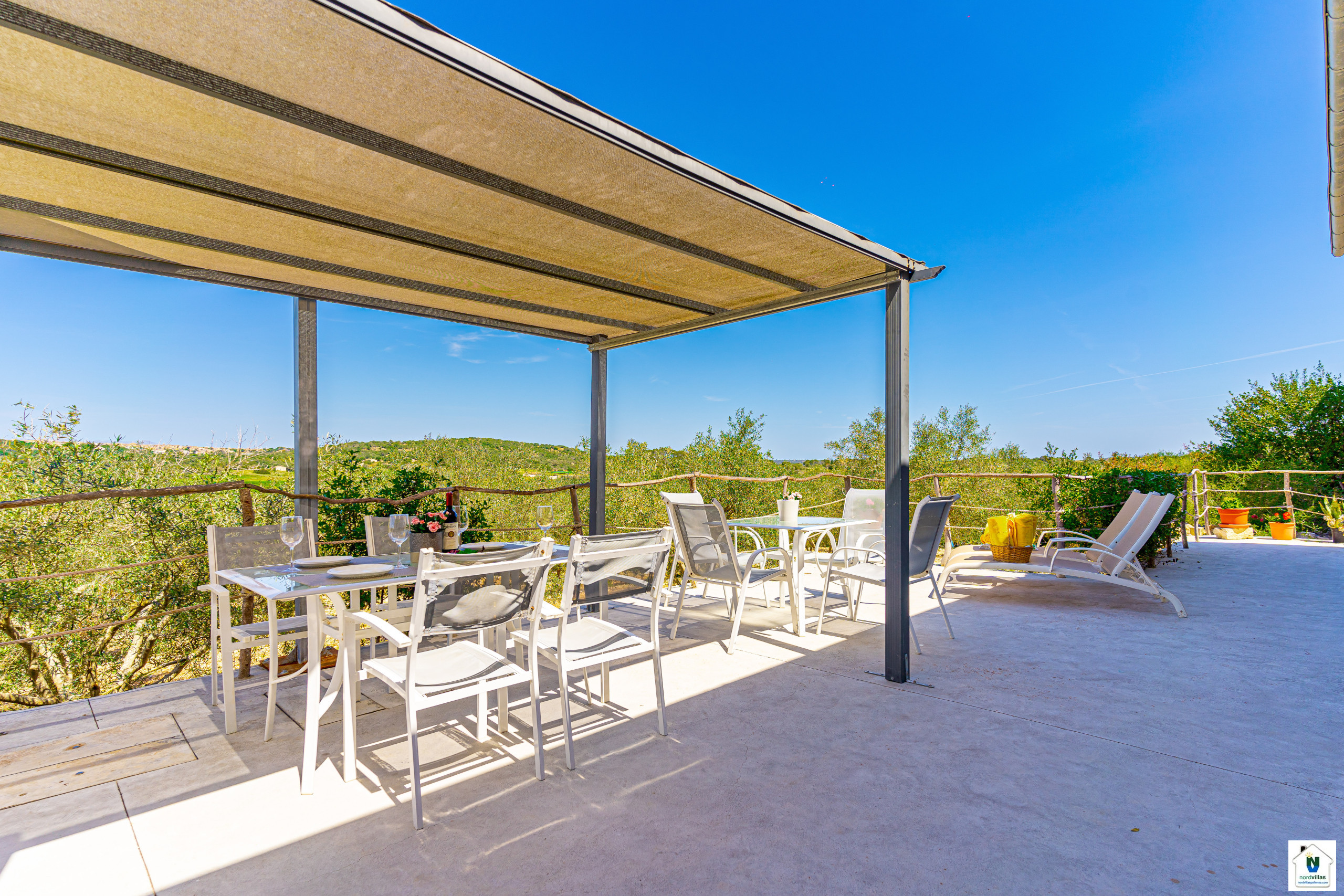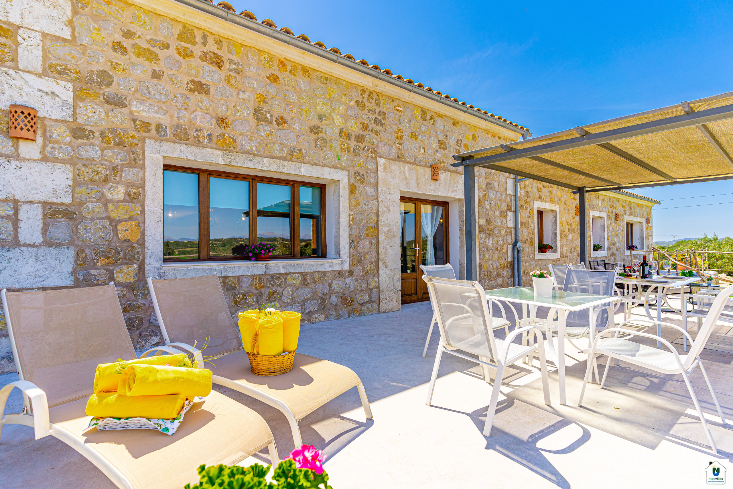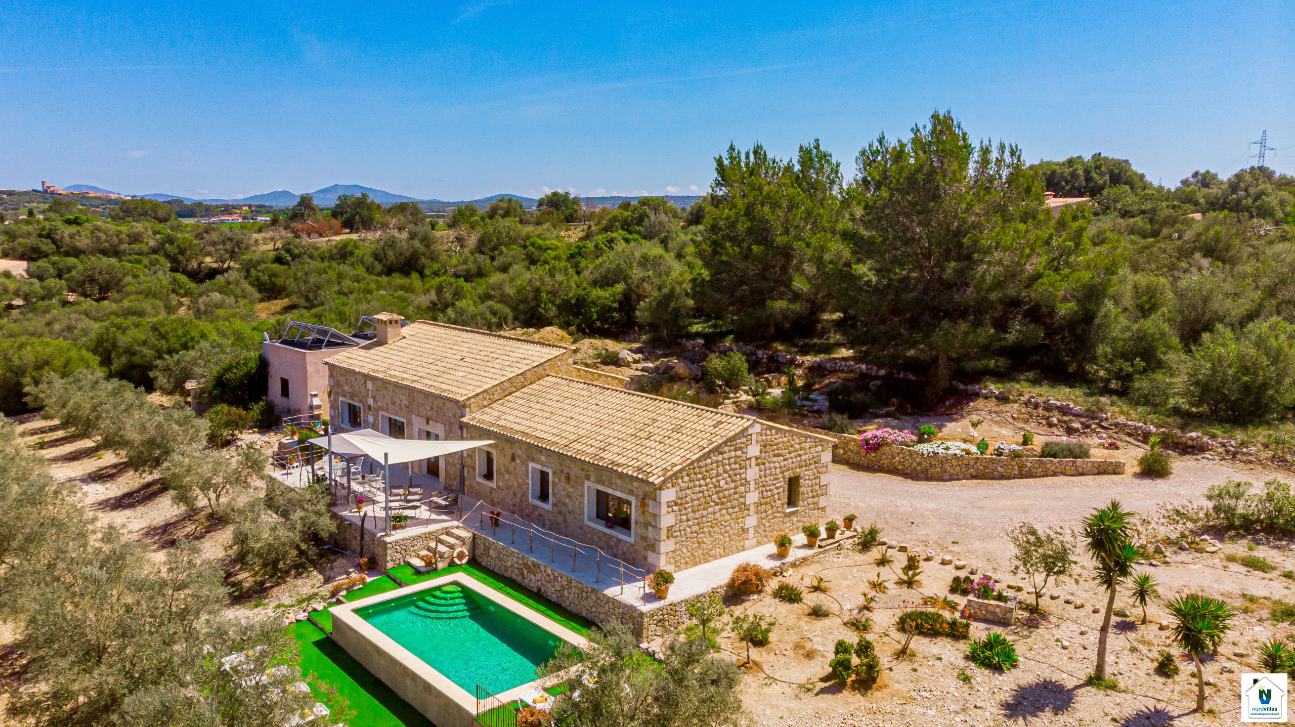 Caluix es una espectacular casa rural revestida en piedra con una impresionante piscina, ubicada entre los encantadores paisajes de Sineu, en el corazón de la isla de Mallorca. Esta encantadora propiedad de una sola planta ofrece una distribución ideal, con una cocina independiente y muy espaciosa, un acogedor salón-comedor, 4 confortables dormitorios dobles y 3 baños completos, todos ellos alimentados por energía solar sostenible.
