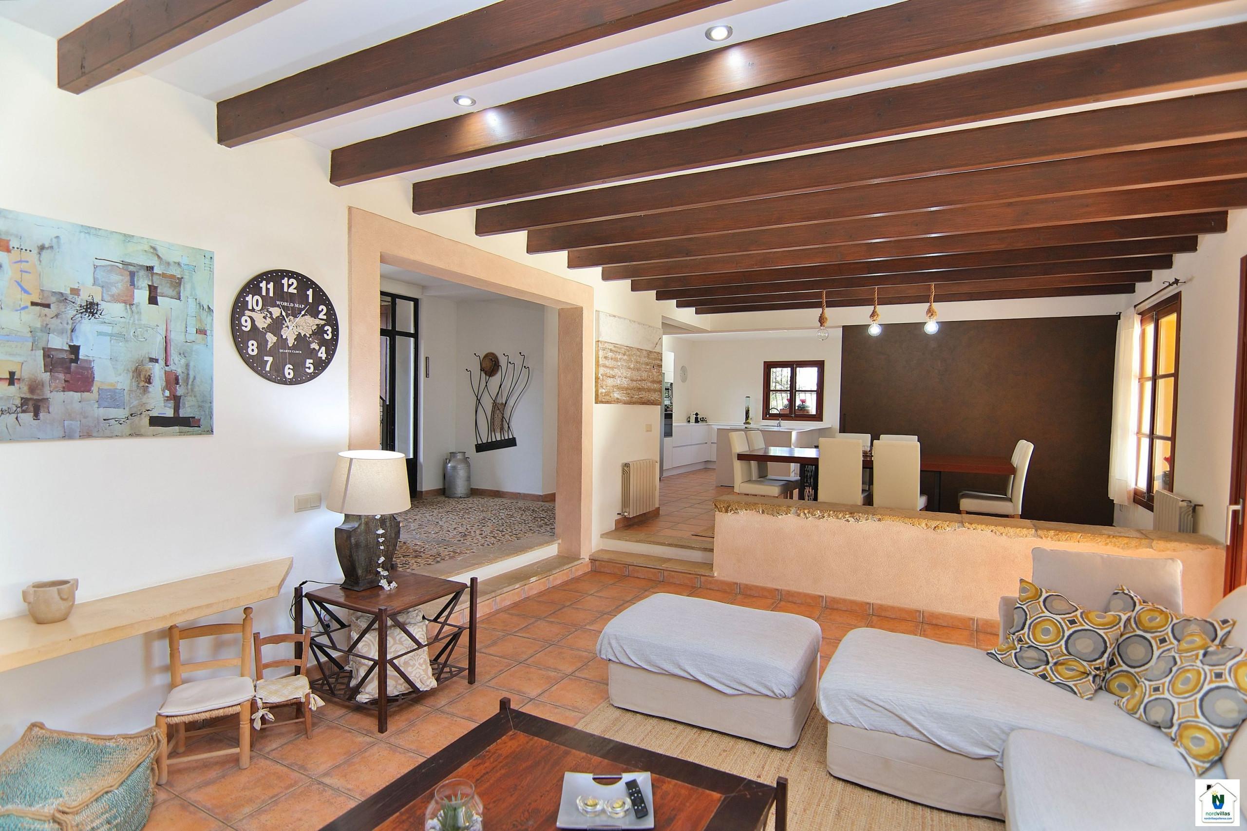 Boligen ligger 2 km by "Binissalem", 2 km supermarked "Binissalem", 2 km togstasjon "Binissalem", 2 km busstasjon "Binissalem", 18 km fornøyelsespark "Festival Park", 26 km sandstrand "Playa de Muro", 28 km steinstrand "Playa de Ca'n Picafort", 31 km flyplass, 32 km golfbane "Golf Alcanada", 33 km naturpark "S´Albufera", 38 km badeland "Aqualand El Arenal" og Den er plassert i en et familievennlig sone og i et landlig område.