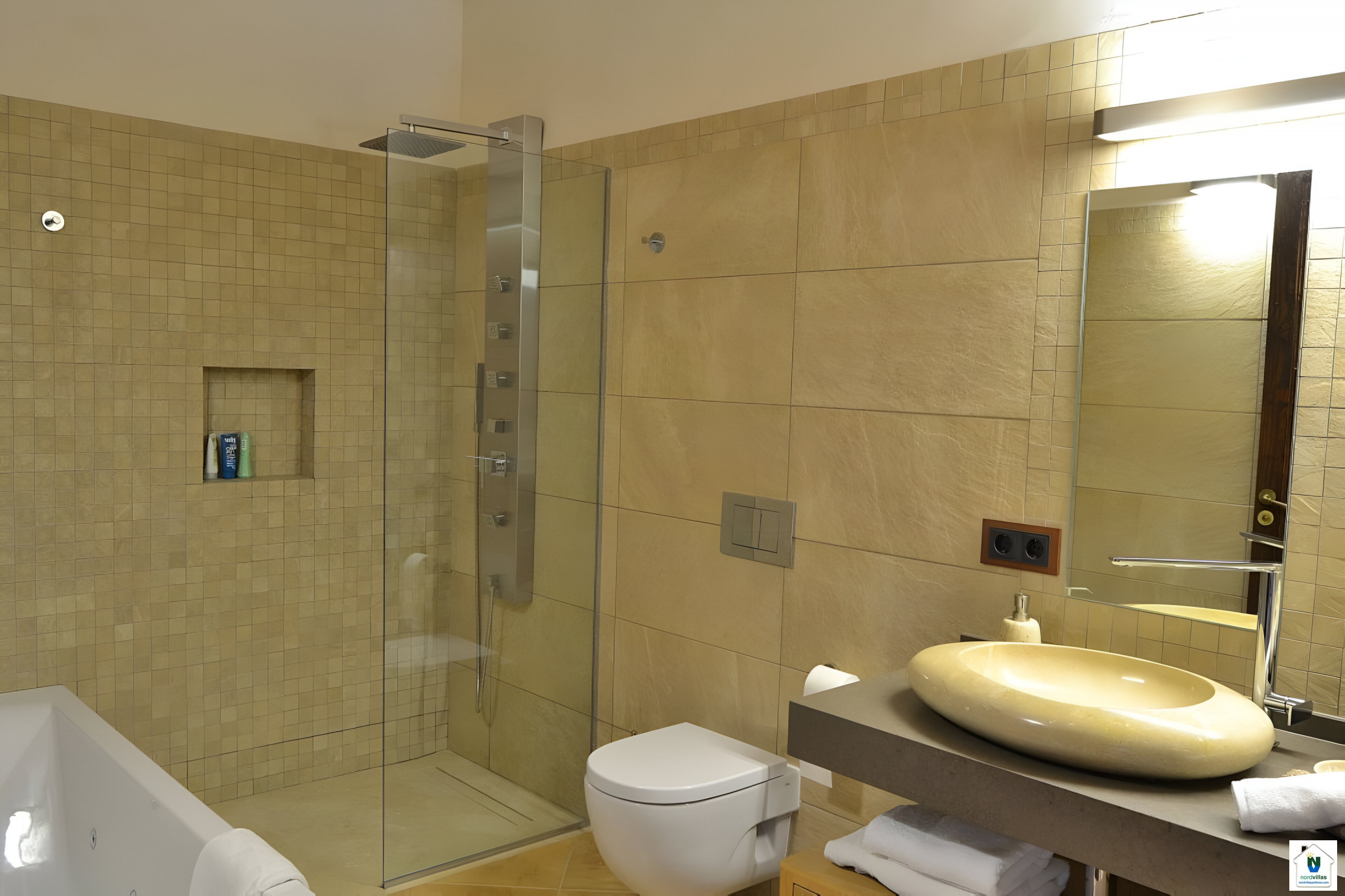 This modern and elegant villa offers enough space for 8 people and is located just 15 minutes from the beach.