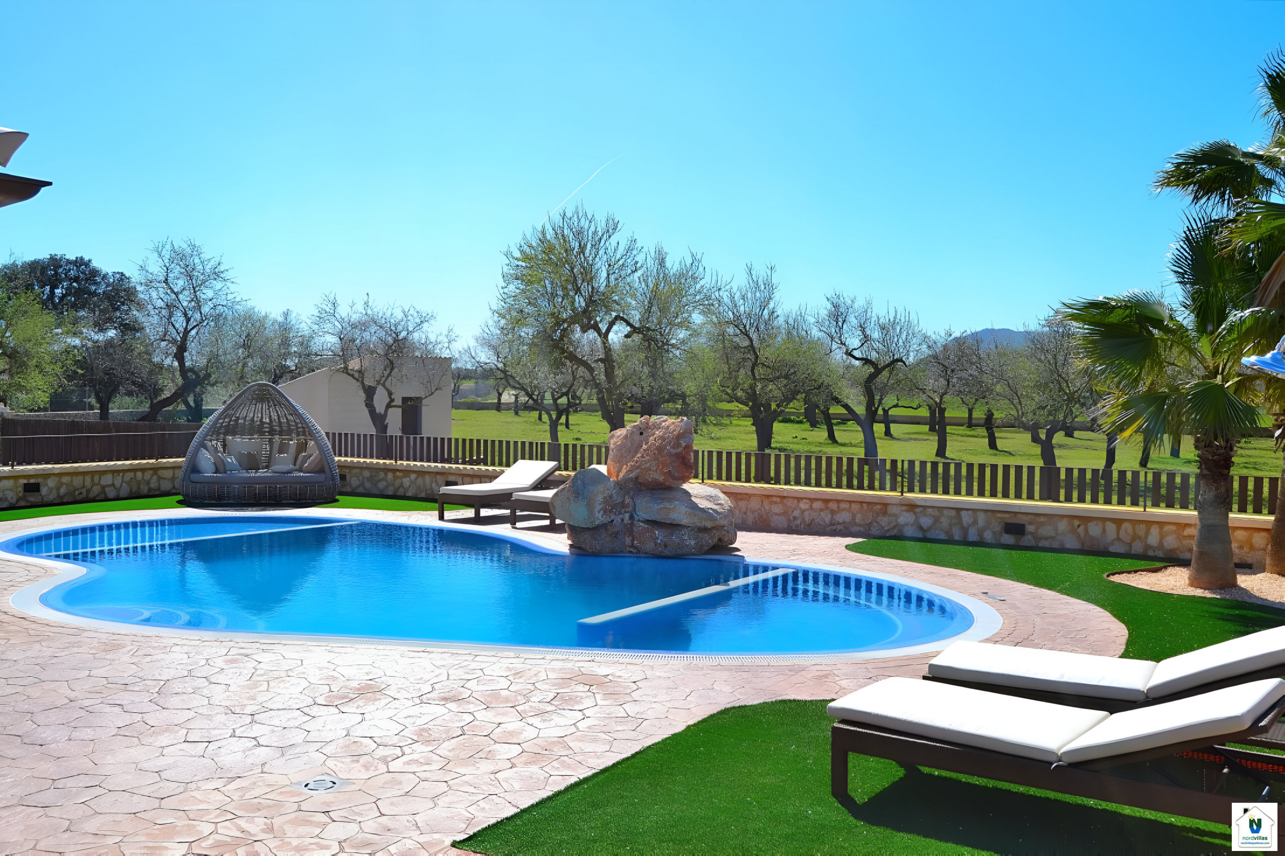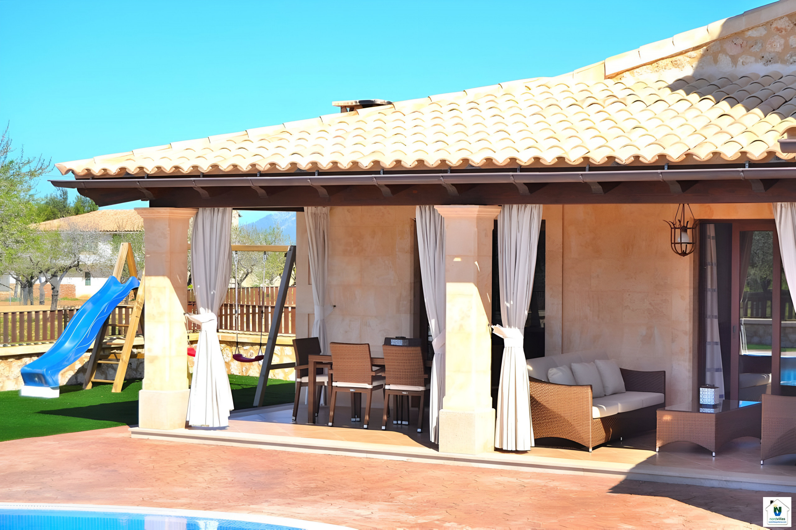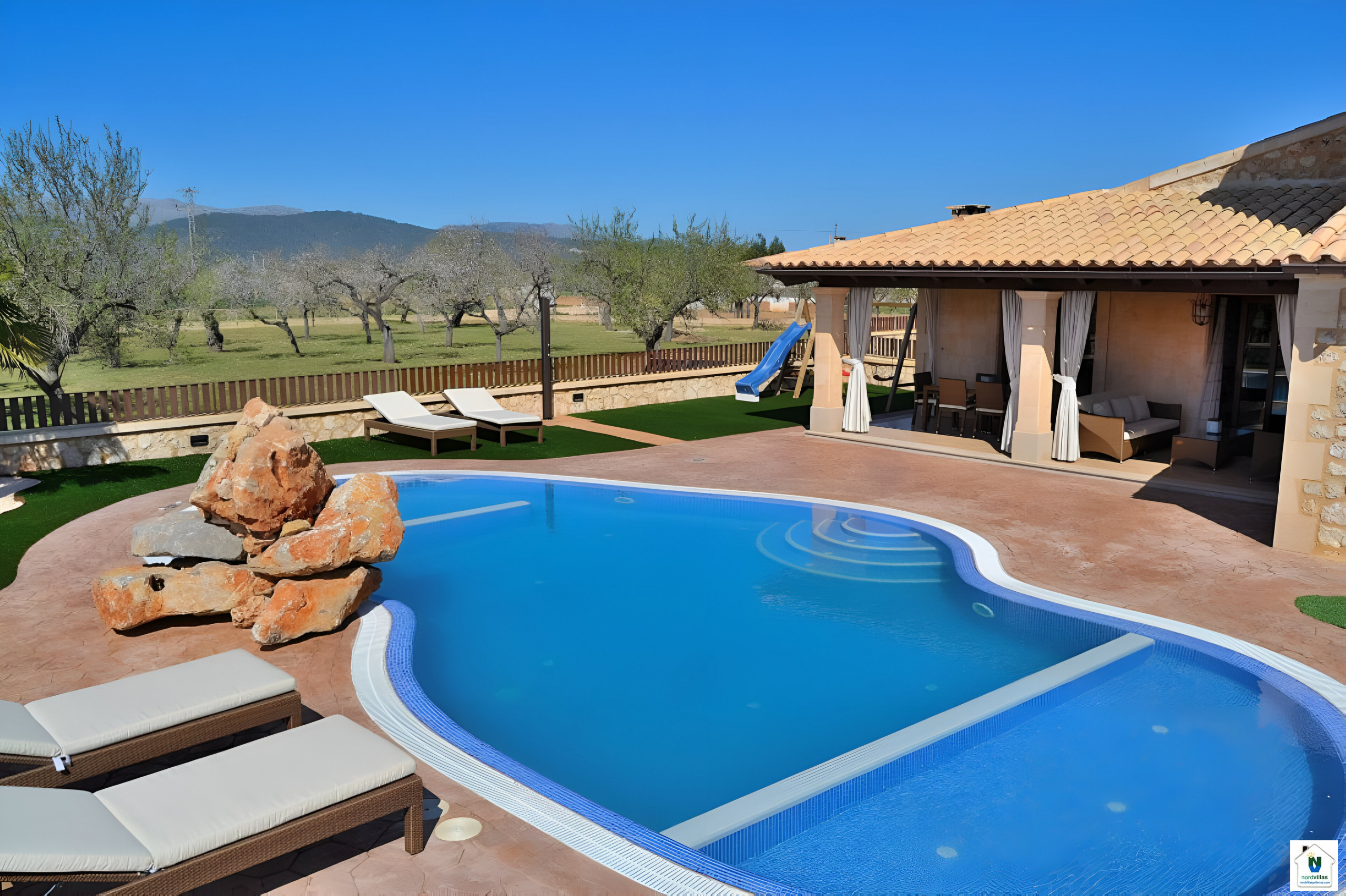 Large villa with a fascinating outdoor area with swimming pool and children's playground, excellent for families with children.