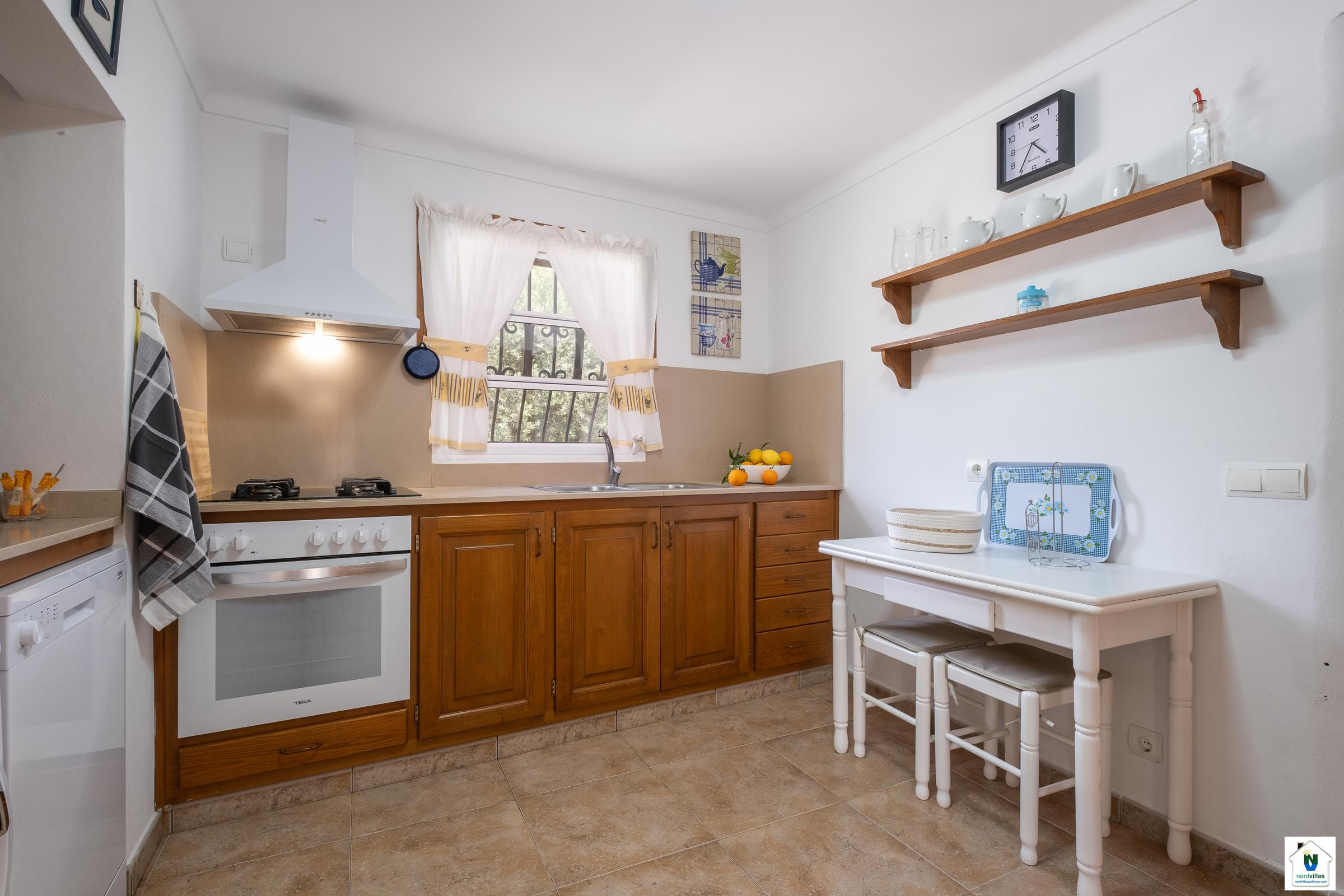 This is a pretty villa set in private gardens which surround the swimming pool. The house is set on two floors with a wide balcony which wraps around the front of the house. All four bedrooms on the upper floor have aircon , two doubles, one twin and a single room with pull out bed. The house has three bathrooms complete with walk in shower, toilet and sink, 2 bathrooms are upstairs and 1 is downstairs. The kitchen is fully equipped with dishwasher, washing machine, microwave, fridge freezer etc. There is a spacious living dining area with comfortable sofas satellite TV, DVD player and WiFi internet connection. Outside there is a covered terrace with a seating and a dining area which overlooks the pool and gardens. There is also a purpose built barbecue house ideal for those al fresco meals. Aircon throughout house.