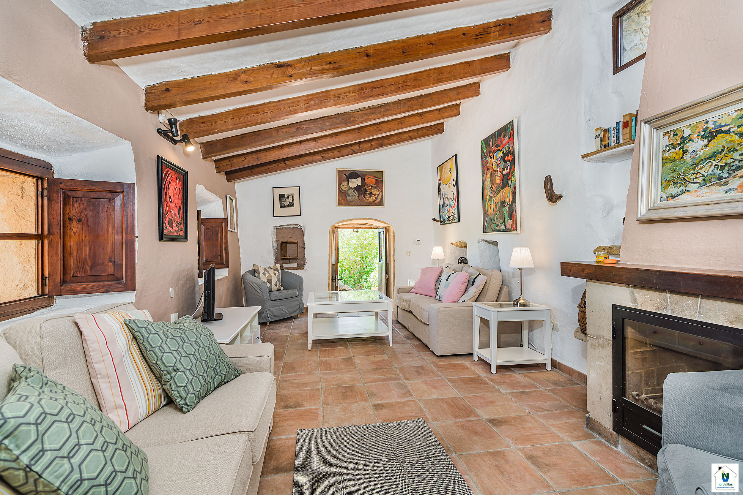 This pretty, charming property is set amongst the Pollensa countryside only a short drive from the old town. The gates at the entrance lead you along a private drive to this cottage style house.
